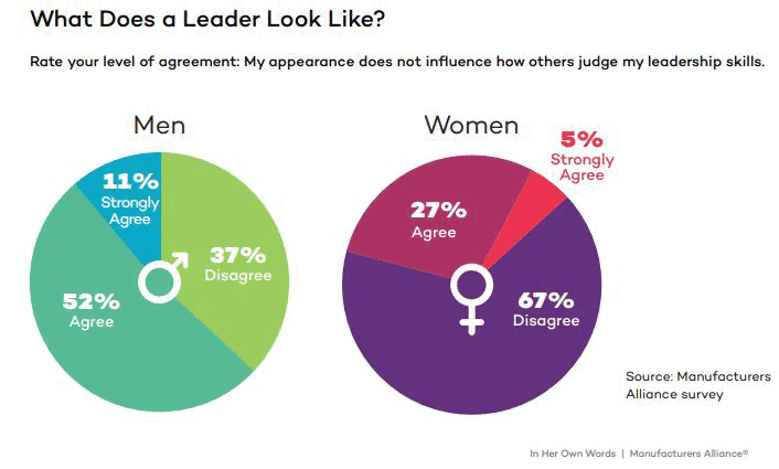 That report identified a number of barriers women in the sector face, including a perception that appearance still plays a big role in how they are judged, as shown in the graphic below from the report: