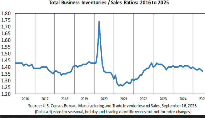 SCDigest periodically looks at a key macroeconomic metric called the Inventory to Sales Ratio, as produced by the US Census Bureau. The ITS measures how many month's how inventory a company has in sales.